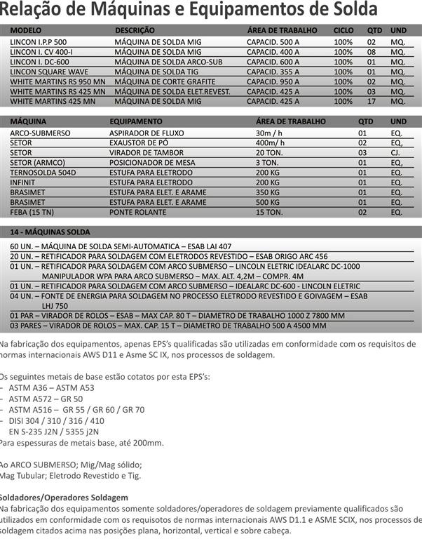 Alcançamos as necessidades específicas de nossos clientes, através de equipamentos e aplicativos para solda, com mão de obra qualificada e procedimentos diversos de soldagem, tais como: Eletrodo revestido, MIG, MAG, TIG, Arco submerso, Oxi-acetileno, Eletro escória e outros.